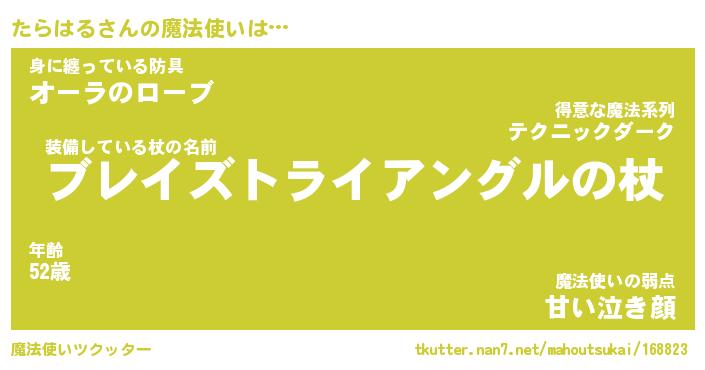 | ヒーロー風カッコイイあだ名 | 『スーパータラハル』『魔戒騎士タラ』 |