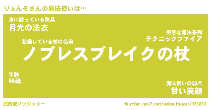 | ファンタジー風あだ名 | 『リョフェル』『エターナルリョンソー』 |