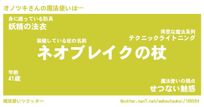 | 男性向けラノベタイトル風あだ名 | 『オノツキの憂鬱』 |