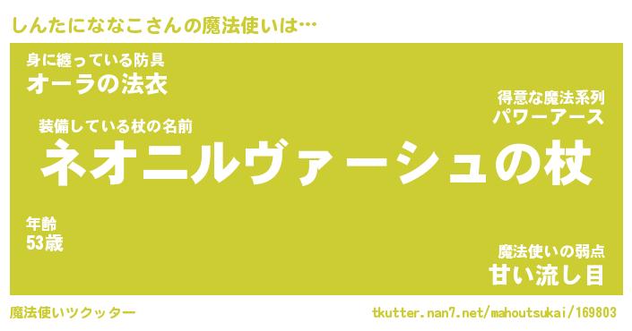 | 胡散臭い通販商品みたいなあだ名 | 『モテモテ間違いなし霊験あらたかなお札…その名も「しんたにななこ」』 |