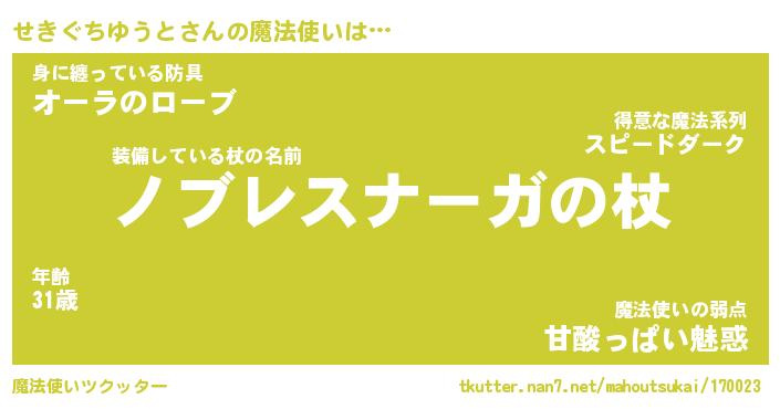 | 男性向けラノベタイトル風あだ名 | 『セキグチユウトアートオンライン』 |