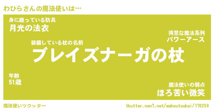 | 男性向けラノベタイトル風あだ名 | 『わひらの憂鬱』 |