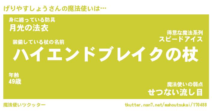 | 肩書あだ名 | 『げりやすしょう店長』 |