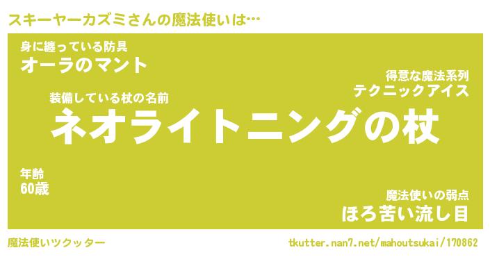 | 男性向けラノベタイトル風あだ名 | 『スキーヤーカズミの憂鬱』 |