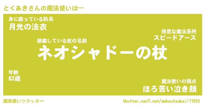 | 男性向けラノベタイトル風あだ名 | 『とくあきの憂鬱』 |
