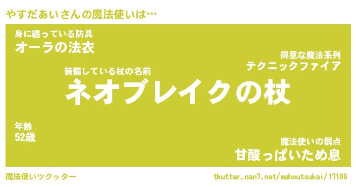 | ファンタジー風あだ名 | 『ヤスフェル』『エターナルヤスダアイー』 |