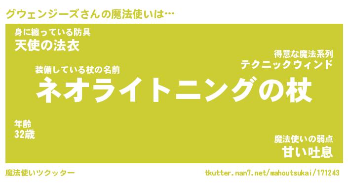 | 男性向けラノベタイトル風あだ名 | 『グウェンジーズの憂鬱』 |