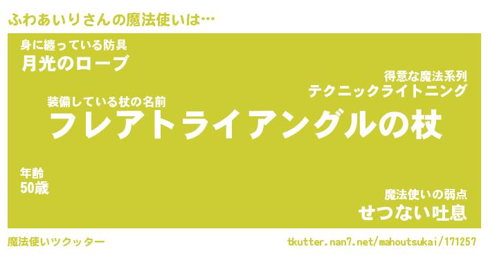 | ファンタジー風あだ名 | 『フワフェル』『エターナルフワアイリー』 |