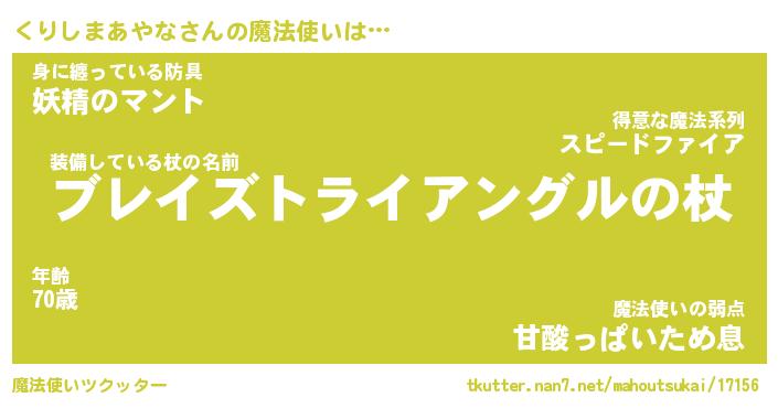 | 伝説のあだ名 | 『不死鳥のスナイパーくりしまあやな』 |