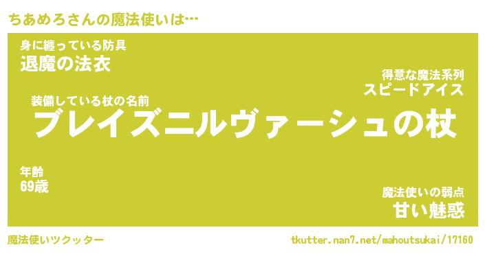 | 男性向けラノベタイトル風あだ名 | 『ちあめろの憂鬱』 |