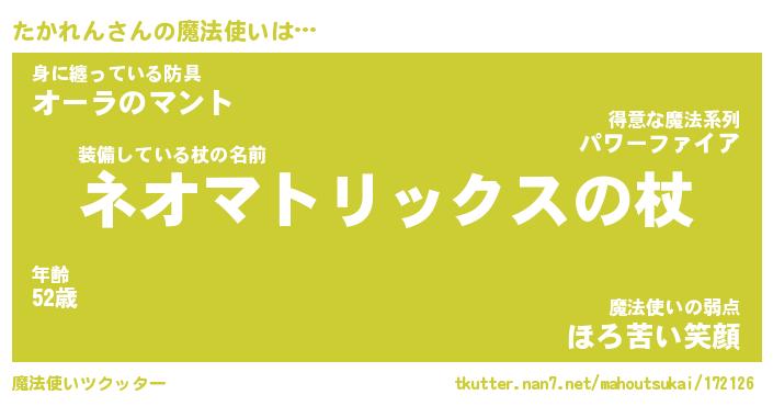 | 伝説のあだ名 | 『不死鳥の竜騎士たかれん』 |