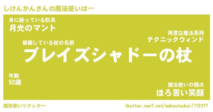| ファンタジー風あだ名 | 『シケフェル』『エターナルシケンカンー』 |
