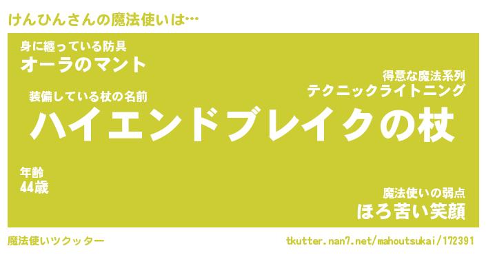 | ファンタジー風あだ名 | 『ケンフェル』『エターナルケンヒンー』 |
