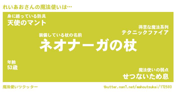| ファンタジー風あだ名 | 『レイフェル』『エターナルレイアオー』 |