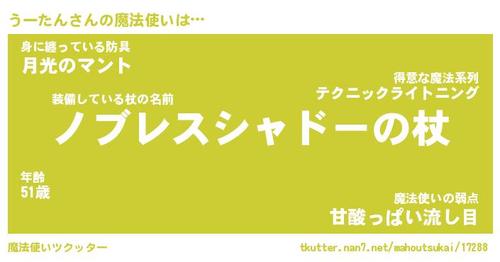 | ファンタジー風あだ名 | 『ウーフェル』『エターナルウータンー』 |