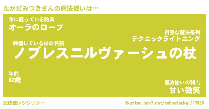 | 肩書あだ名 | 『たかだみつき御曹司』 |