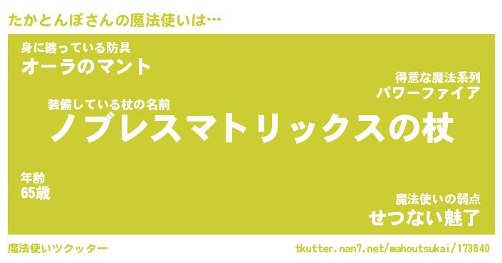 | ファンタジー風あだ名 | 『タカフェル』『エターナルタカトンボー』 |