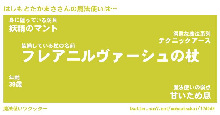 | 男性向けラノベタイトル風あだ名 | 『はしもとたかまさの憂鬱』 |