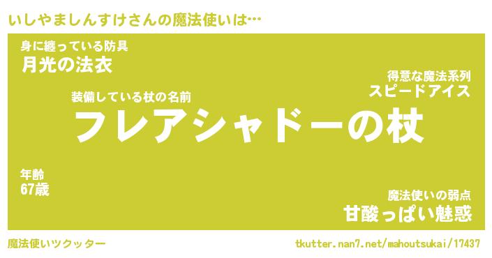 | 男性向けラノベタイトル風あだ名 | 『いしやましんすけの憂鬱』 |