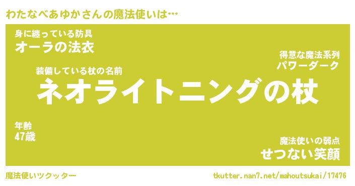 | ポケモン風あだ名 | 『ワタチュウ』『ワタナダネ』 |
