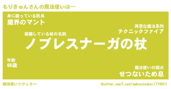 | 男性向けラノベタイトル風あだ名 | 『モリキュンアートオンライン』 |