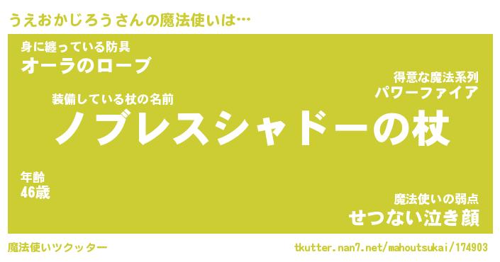 | 男性向けラノベタイトル風あだ名 | 『ウエオカジロウアートオンライン』 |