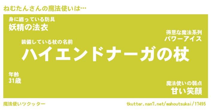 | ファンタジー風あだ名 | 『ネムフェル』『エターナルネムタンー』 |