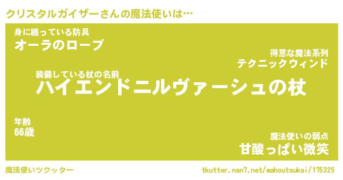 | 伝説のあだ名 | 『封印されしスナイパークリスタルガイザー』 |