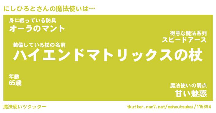 | ファンタジー風あだ名 | 『ニシフェル』『エターナルニシヒロトー』 |