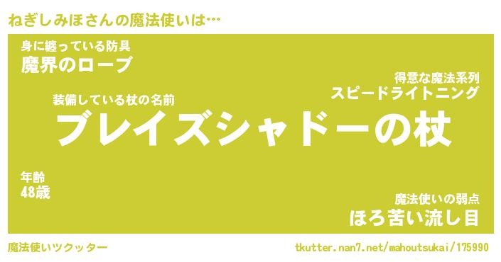 | ファンタジー風あだ名 | 『ネギフェル』『エターナルネギシミホー』 |
