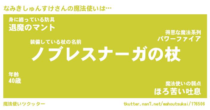 | ツイッター | なみきしゅんすけさんのツイッターID『dendenmushi_nyan』 |