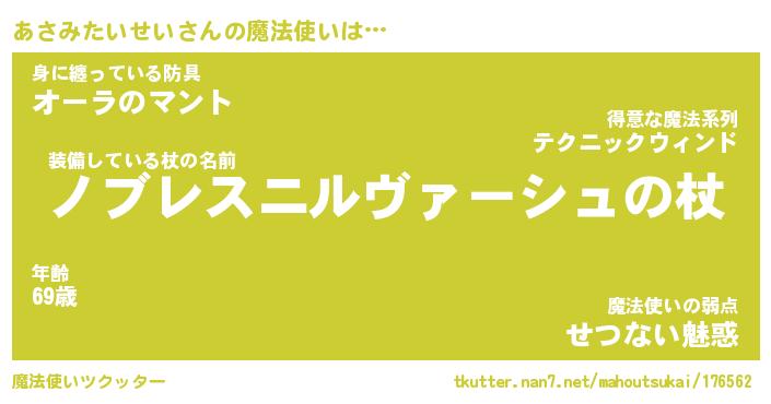 | 男性向けラノベタイトル風あだ名 | 『アサミタイセイアートオンライン』 |