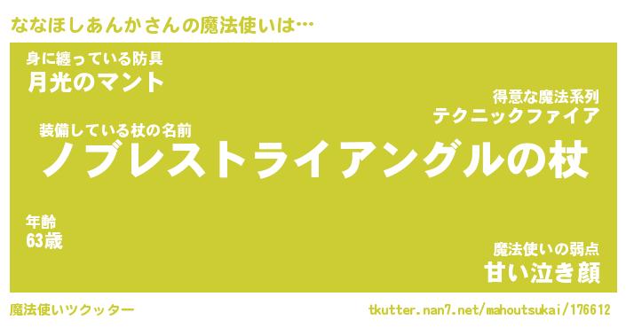 | 女子向けラノベタイトル風あだ名 | 『ななほしあんか姫と円卓の騎士』 |
