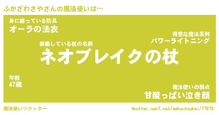 | ヒーロー風カッコイイあだ名 | 『スーパーフカザワサヤ』『幻影騎士フカ』 |