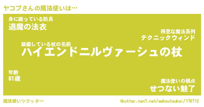 | 男性向けラノベタイトル風あだ名 | 『ヤコブアートオンライン』 |