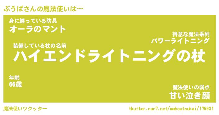 | ファンタジー風あだ名 | 『プウフェル』『エターナルプウパー』 |