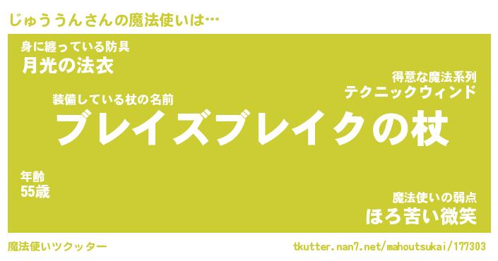 | 男性向けラノベタイトル風あだ名 | 『じゅううんの憂鬱』 |