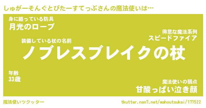 | 胡散臭い通販商品みたいなあだ名 | 『億万長者になれる水晶球…その名も「しゅがーそんぐとびたーすてっぷ」』 |