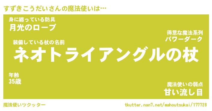 | 胡散臭い通販商品みたいなあだ名 | 『モテモテ間違いなし水晶球…その名も「すずきこうだい」』 |