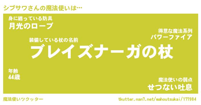 | ファンタジー風あだ名 | 『シブフェル』『エターナルシブサワー』 |