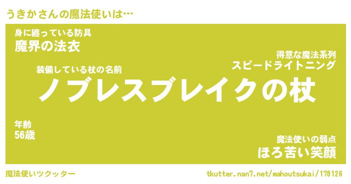 | ファンタジー風あだ名 | 『ウキフェル』『エターナルウキカー』 |