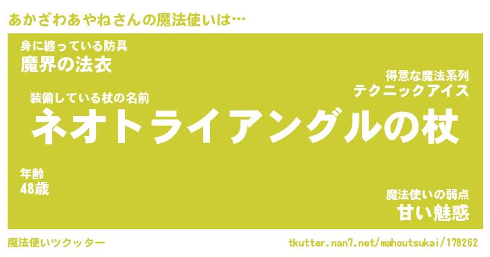 | 伝説のあだ名 | 『不死鳥のスナイパーあかざわあやね』 |