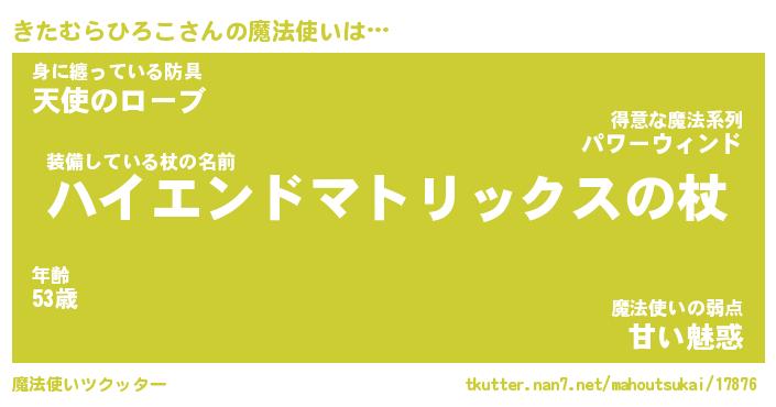 | 伝説のあだ名 | 『封印されし竜騎士きたむらひろこ』 |