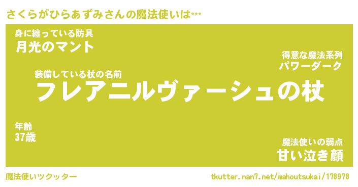 | 男性向けラノベタイトル風あだ名 | 『さくらがひらあずみの憂鬱』 |