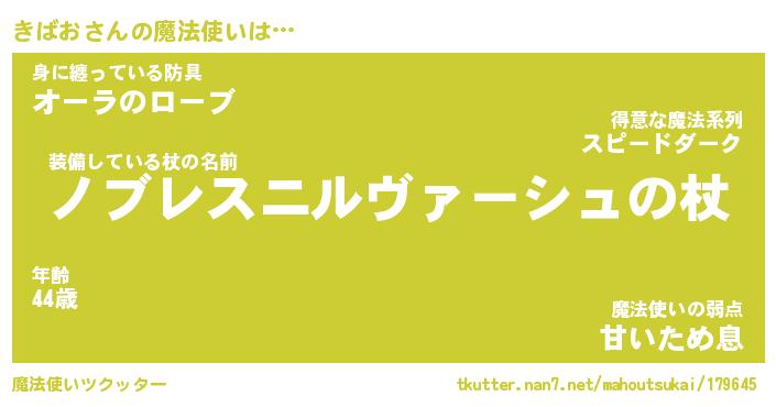 | ファンタジー風あだ名 | 『キバフェル』『エターナルキバオー』 |