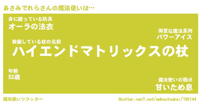 | 伝説のあだ名 | 『封印されし竜騎士あさみでれら』 |