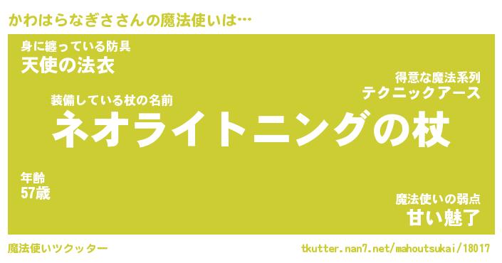 | 胡散臭い通販商品みたいなあだ名 | 『モテモテ間違いなし水晶球…その名も「かわはらなぎさ」』 |