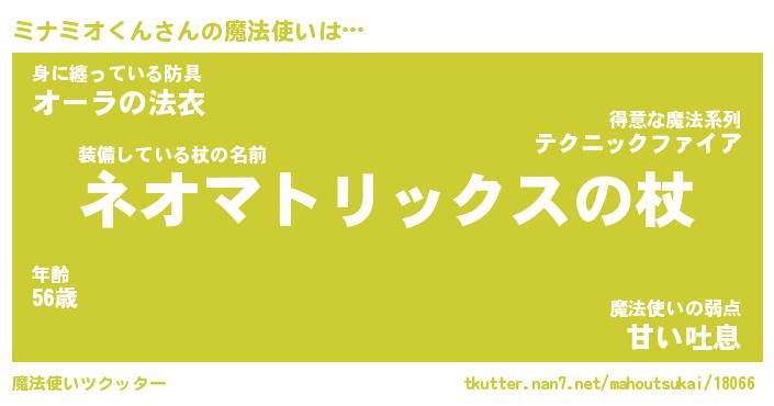 | ファンタジー風あだ名 | 『ミナフェル』『ファントムミナス』 |