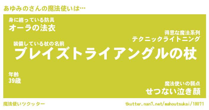 | ファンタジー風あだ名 | 『アユフェル』『エターナルアユミノー』 |