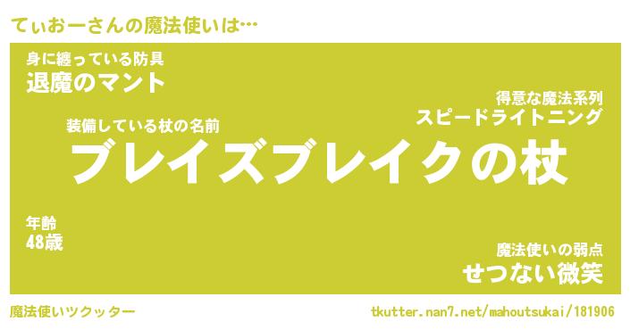 | 伝説のあだ名 | 『不死鳥の傭兵てぃおー』 |